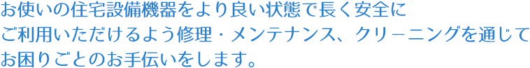 住宅設備機器に関する、修理・メンテナンス・クリーニング・点検などお客様の「お役立ち」を考えるサービスです。